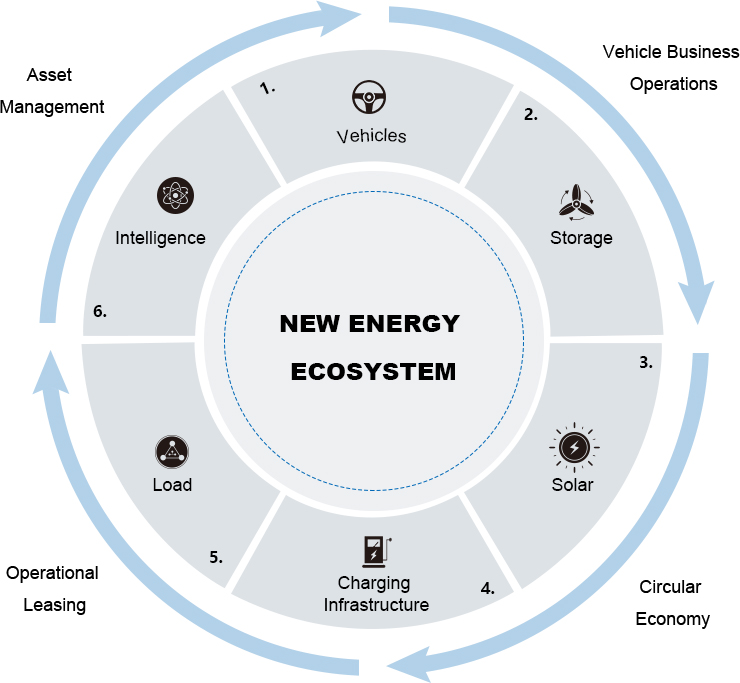 Ecological development: plan to systematically address energy consumption, energy production, and energy trading. This systematic approach will help build a user-centric and future-oriented "co-creation, co-construction, and co-sharing" ecosystem for new energy businesses. This ecosystem will include asset management, vehicle operations, operating lease, and recycling & utilization. These entities will collectively form FOTON's "product-centric + service-centric" business ecosystem, empowering users while also contributing value to the relevant value chains.
